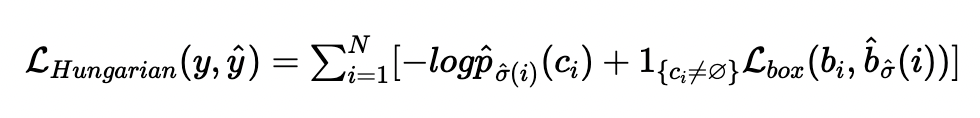 Hugrarian matcher를 통해 구한 loss는 다음과 같다.