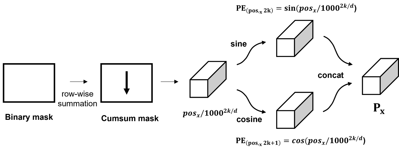 두 번째로 누적합에 대해서 기존 positional encdoing과 같이 각 위치에 sin, cos 변환을 수행한다. 동일하게 column-wise 누적합을 통해서도 이 과정을 수행한다.