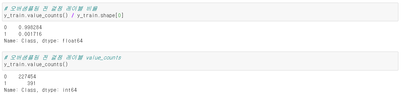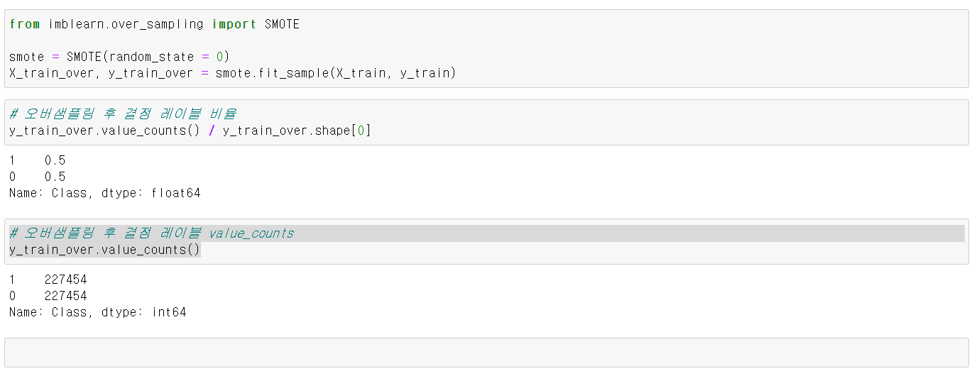 * 오버 샘플링 방식이 예측 성능상 더 유리한 경우가 많아 주로 사용됨