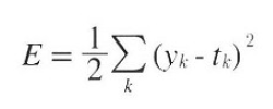 y는 신경망의 출력, t는 정답 레이블, k는 데이터의 차원 수를 나타냅니다.