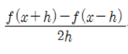 -> 위 수식은 x의 값을 아주 조금 키워 미분한 전방 차분이라고 합니다. 하지만 h의 값을 무한히 0으로 좁히는 것이 불가능해 오차가 포함되고, 이 오차를 줄이기 위해 중앙 차분을 사용합니다.