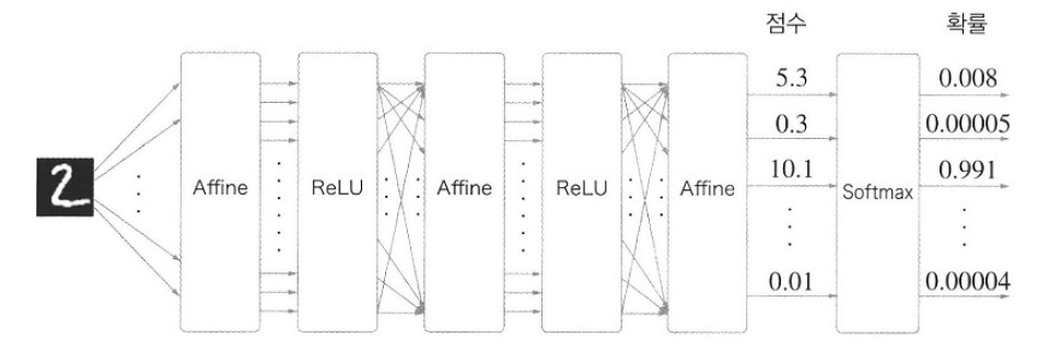 지금까지 살펴본 여러 역전파 계층들을 조합해서 전체 신경망의 오차역전파를 완성할 수 있습니다.