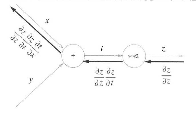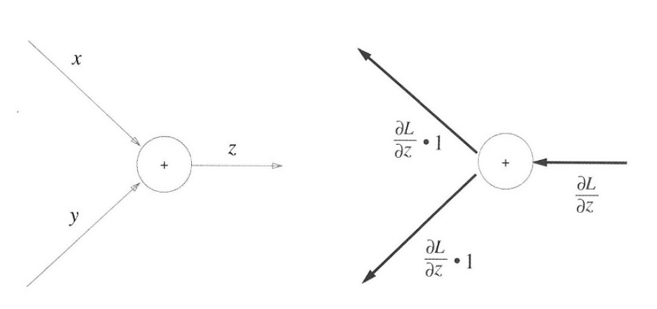 덧셈의 과정을 거슬러 올라갈 때 국소적 미분이 1이 나오기 때문에 연쇄법칙 진행되어도 1이 곱해져 미분식이 바뀌지 않습니다.