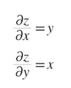 z = xy라는 단순 곱셈 함수를 각각의 변수로 미분해주면 다음과 같습니다.