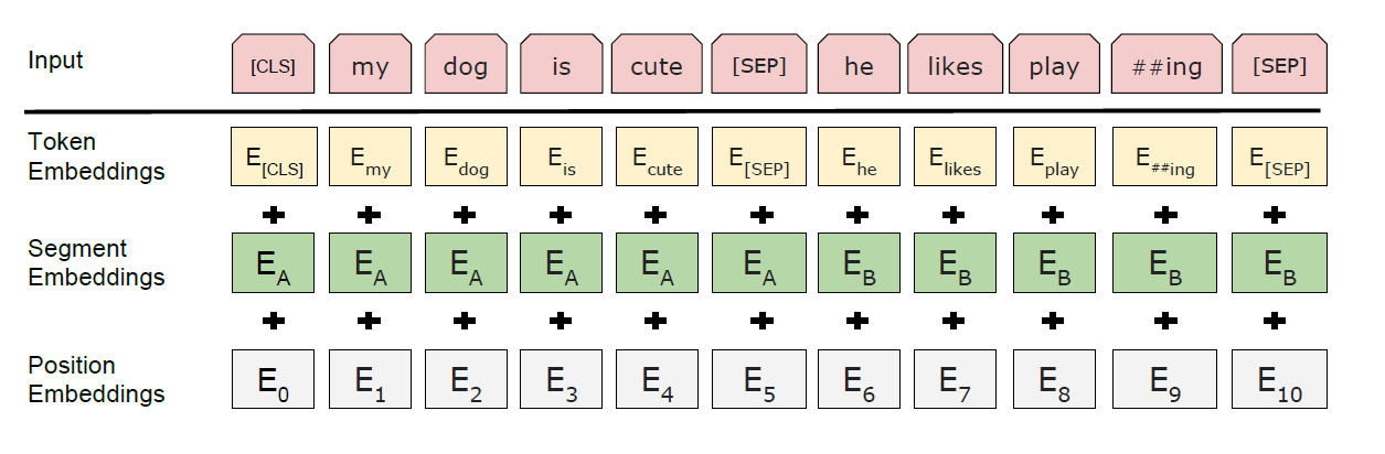 이 세가지 Embedding을 더해 input으로 사용한다.