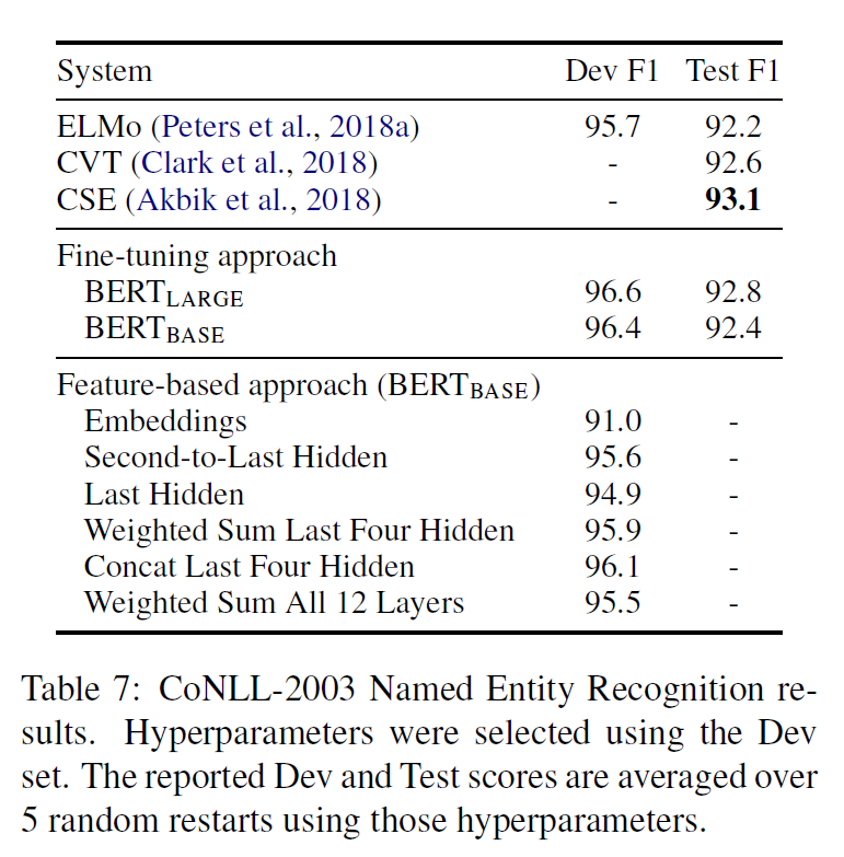 기존 fine-tuning 모델과 features-based 모델을 비교한 결과 BERT는 두 가지 방식 모두 효과가 있었다.(BERT_LARGE가 제일 좋은 성능을 보여줌)