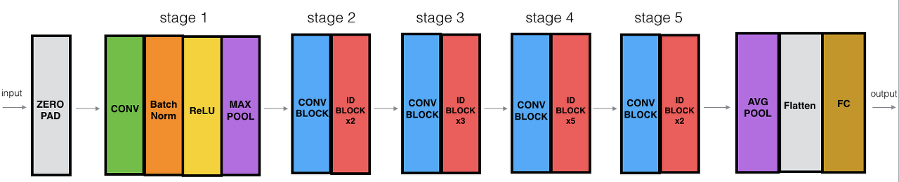 기본적인 구조는 위와 같다. layer-version에 따라서 stage2~stage5의 각 layer 개수가 결정된다.