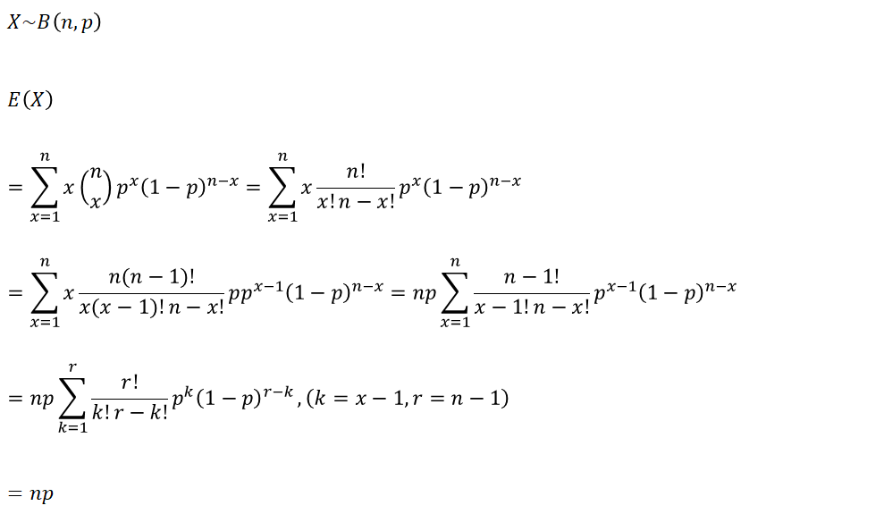 특정 실험에서 성공 확률이 p인 베르누이 시행을 독립적으로 n번 반복 시행했을 때 성공의 횟수를 확률변수 X라 하면 확률변수 X는 시행햇수 n과 성공 확률 p를 모수로 갖는 이항분포가 된다. (동전 던지기 n번 시행)