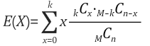 크기 N의 유한모집단 중 크기 n의 확률표본을 뽑을 경우, N개 중 k개는 성공으로, 나머지 N-k개는 실패로 분류하여 비복원으로 뽑을 때 성공 횟수를 X라 하면, 확률변수 X는 N, k, n을 모수로 갖는 초기하분포를 따른다고 한다.