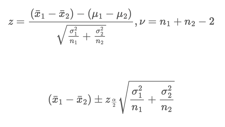 - 두 모집단의 분산을 안다면? -> 전체 데이터와 모평균을 안다는 것인데 이러면 두 모평균 차이에 대한 가설 검정을 하는 것이 의미가 있나 싶다.